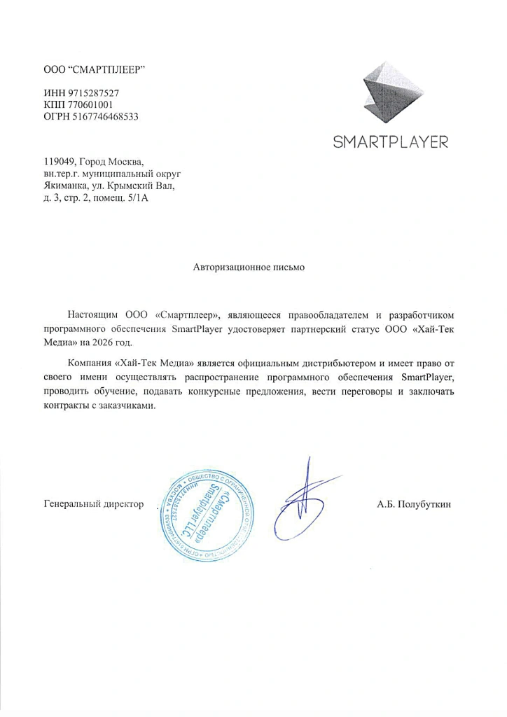 SmartPlayer ─ сертификат, 2026