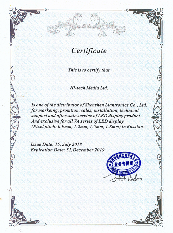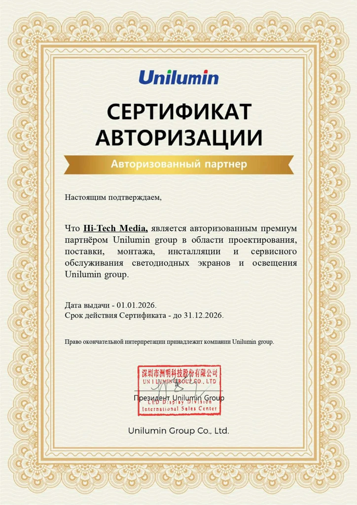 Unilumin ─ сертификат, 2026