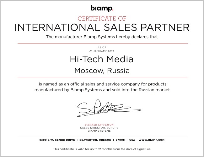 WyreStorm ─ сертификат, 2026