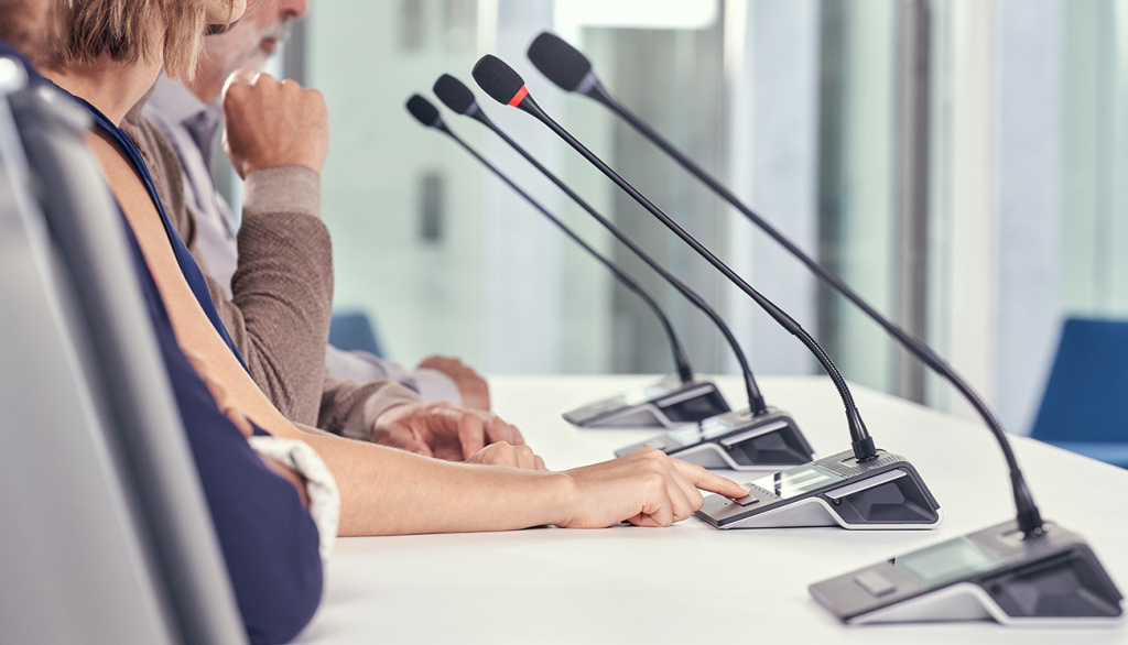 - Универсальность и гибкость. Микрофонный пульт можно использовать в двух режимах — председателя и делегата. Доступно 10 различных конфигураций — от режима делегата с базовым набором функций до уровня председателя с полным функционалом.