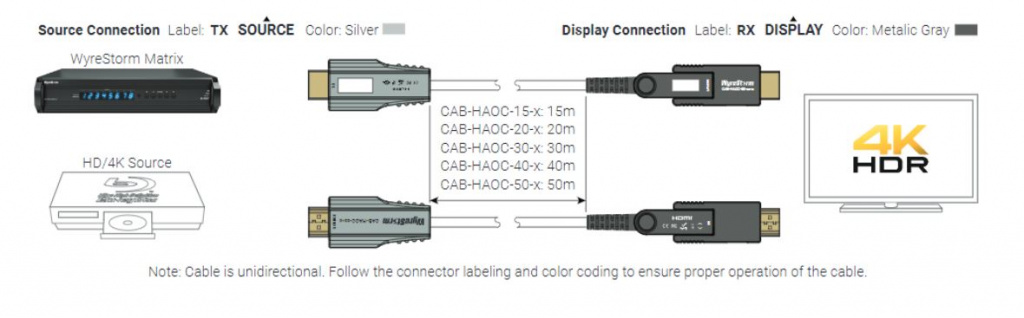 Активные оптические кабели HDMI нового поколения, предназначенные для 4K UHD следующего поколения с HDR-контентом, WyreStorm CAB-HAOC-15-C обеспечивает несжатый контент с пропускной способностью 24 Гбит / с HDMI до 15 м, используя новейшую технологию передачи, поддерживая дополнительные функции HDMI, такие как CEC и ARC. Отсоединяемый разъем HDMI типа A на приемной стороне позволяет легко установить его, уменьшив размер головки до 14 мм / 0,55 ”.