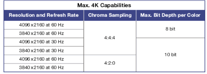 - Поддержка компьютерных разрешений и видеоразрешений до 4K/60 с семплированием 4:4:4