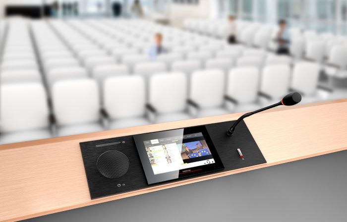 Televic Plixus - цифровая конференц-система нового поколения, объединившая настольные и врезные пульты делегатов, председателей Confidea T и F, мультимедийные пульты UniCos и пульты переводчиков, для стационарного монтажа или мобильной установки.