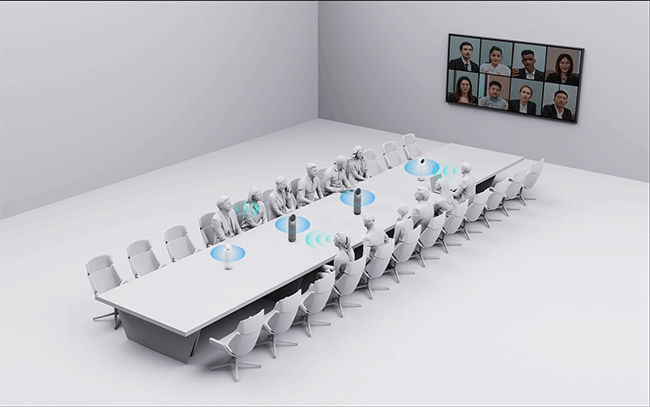 Гибридный комплект для переговорных комнат позволяет в любой момент изъять из системы любое количество камер модели S или PRO и задействовать их в других мероприятиях. Комбинация устройств 360 и 180 градусов позволяет не переплачивать за излишний угол обзора там, где это не требуется.