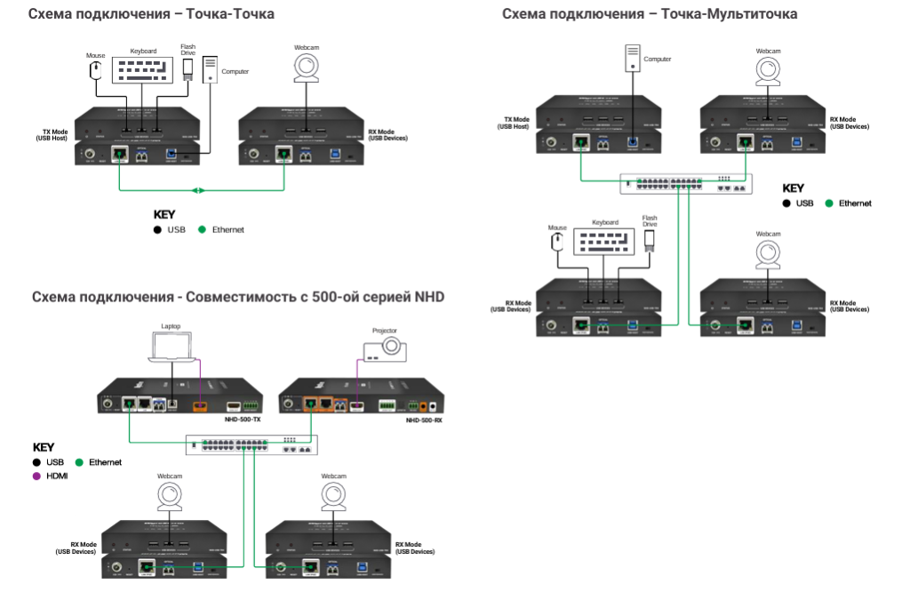 - Совместимость с серией NHD-500 для расширенной функциональности USB-устройств
