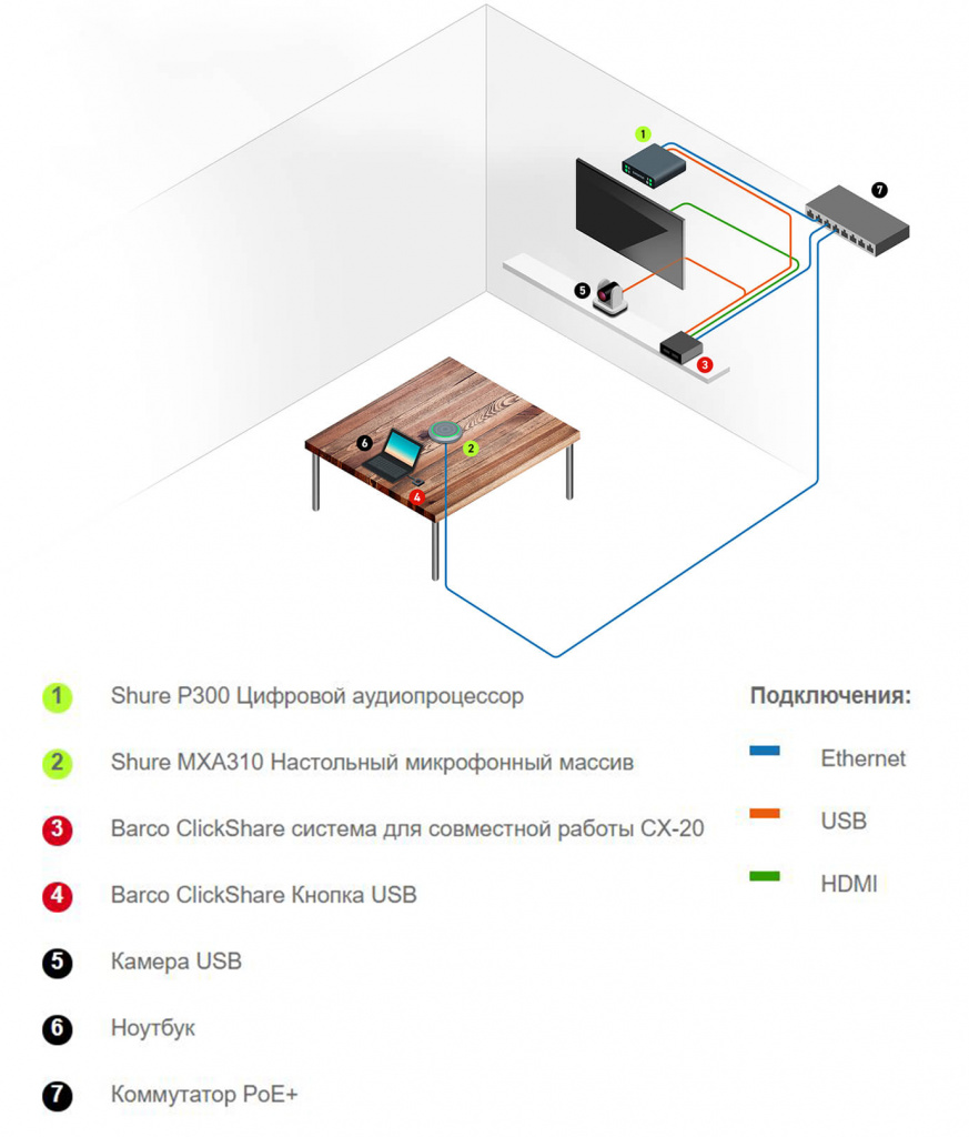 «Ваши клиенты, будь то студенты или руководители коммерческих структур, за счет использования высококачественных беспроводных микрофонов от Shure и конференц-системы от Barco ClickShare будут чувствовать себя так, как будто они находятся в одной комнате с собеседником».Shure и ClickShare также легко адаптируются под работу с ведущими сторонними платформами для видеоконференцсвязи, таких как Zoom, Microsoft Teams, Cisco Webex и бесконечное множество других программ подобного типа.