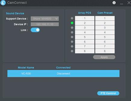 Программирование не требуется: установка осуществляется с помощью мастера установки. CamConnect соединяет выбранные PTZ-камеры Lumens с рядом микрофонных систем от Shure, Sennheiser и Nureva (в скором времени). Это мгновенно превращает PTZ-камеру Lumens в камеру с интеллектуальным голосовым отслеживанием.