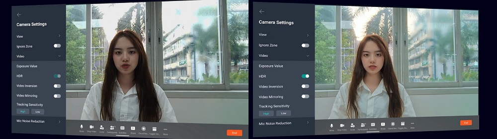 Для обеспечения наилучшего качества изображения во время встреч добавлена возможность переключения HDR в реальном времени. Это позволяет легко подстраиваться под изменяющиеся условия освещения во время встречи, обеспечивая высокое качество изображения в любых ситуациях.