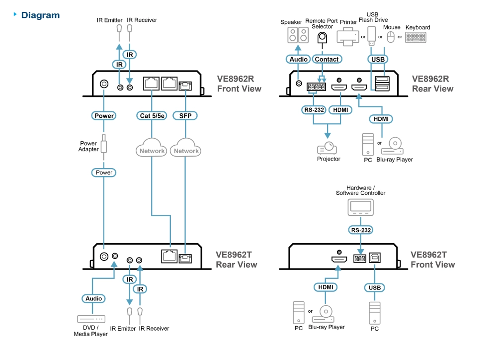 Эти устройства поддерживают True 4K HDMI, питание через PoE, и подходят для создания современных систем передачи аудио и видео. Использование устройств VE8962 возможно в проектах любого уровня благодаря гибкости и масштабируемости.